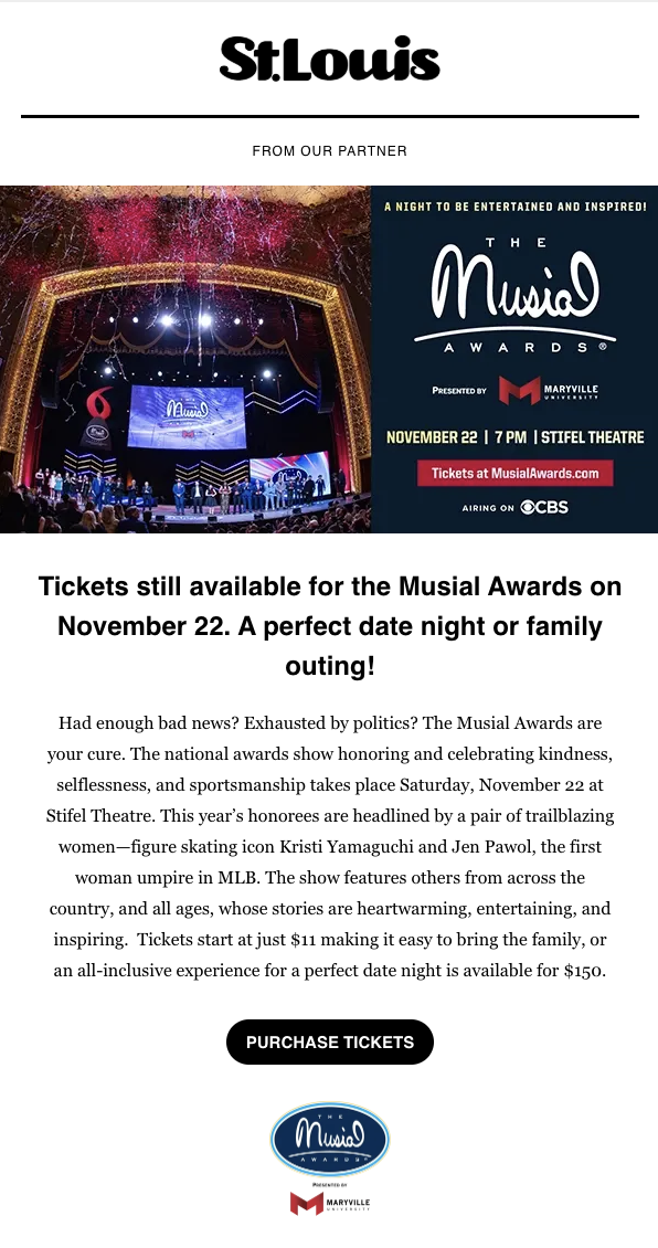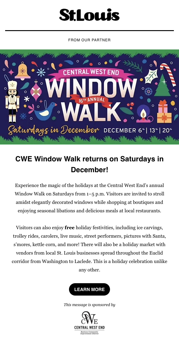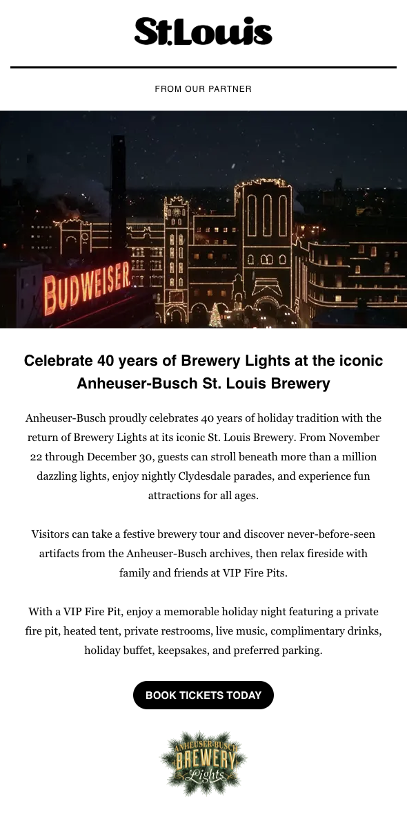 4 Hands; Anheuser-Busch Brewery Experiences; Ozarks Heritage Preserve; St. Louis Sports Commission; Repertory Theatre of St. Louis; Central West End Business Community Improvement District