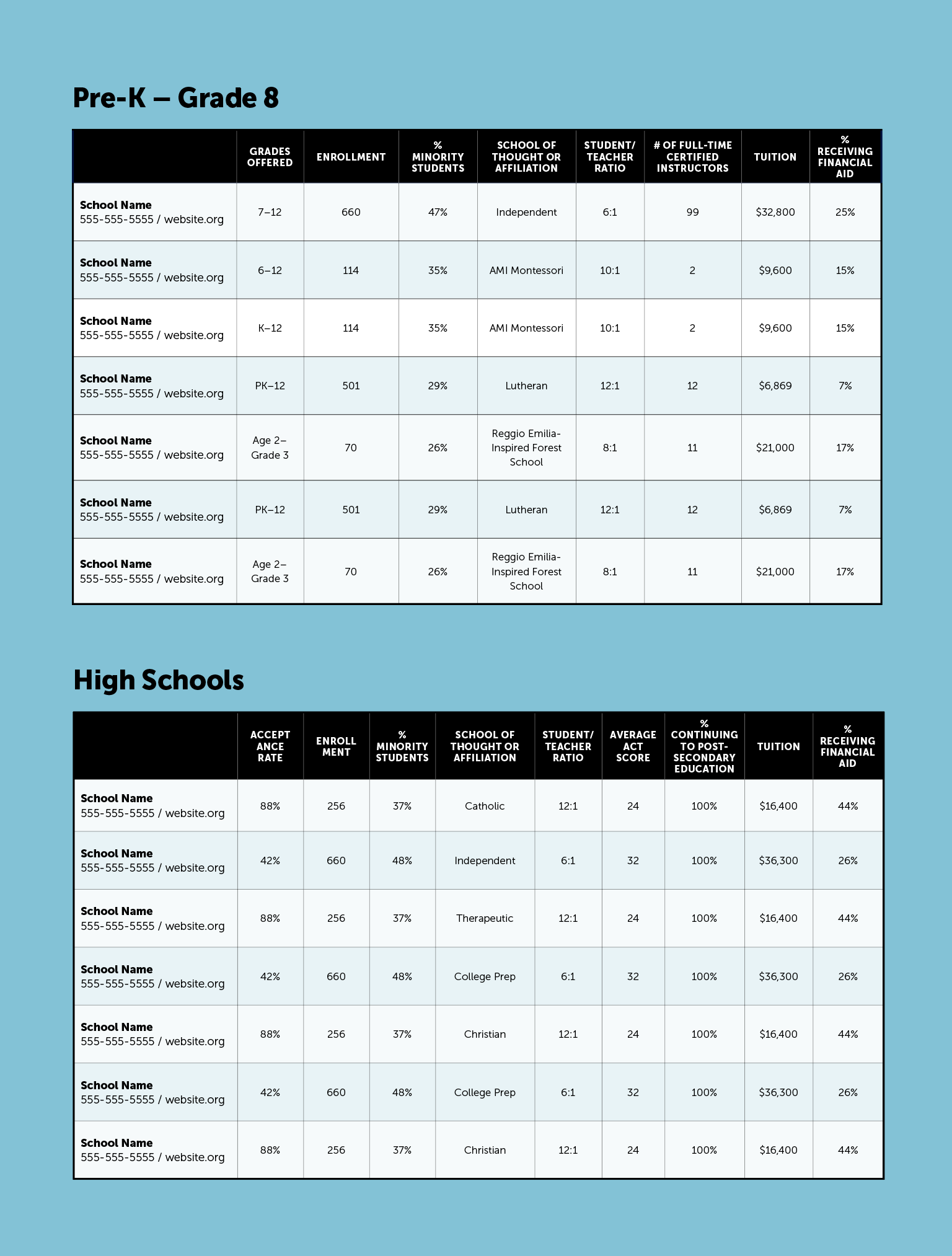 Go To: Full Page Specs / Half Page Specs / Quarter Page Specs / School Chart Info