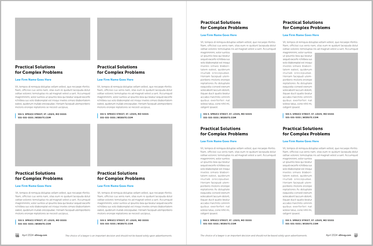 Go To: Spread Specs / Full Page Specs / Half Page Specs / Quarter Page Specs / Questions